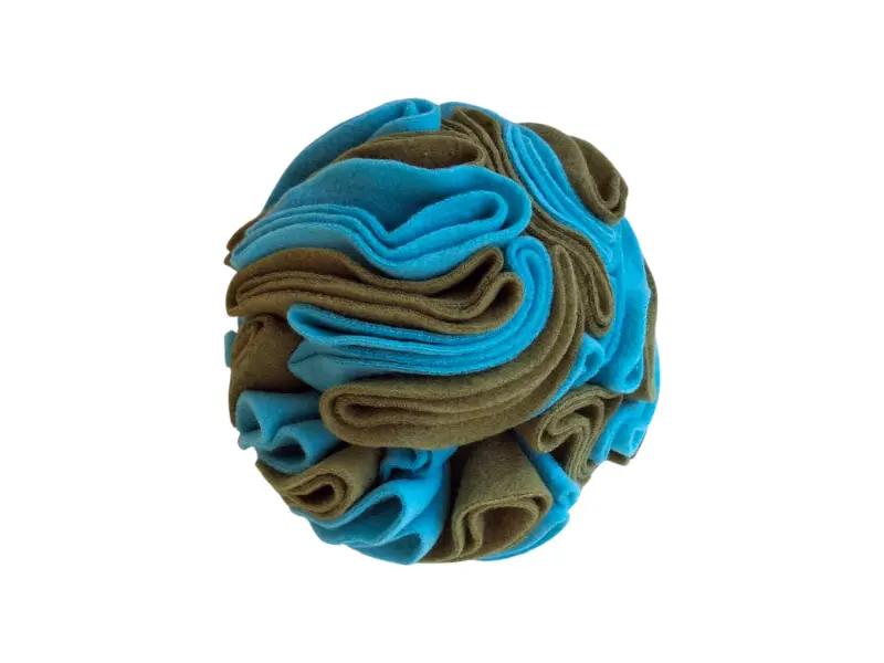Robuster Schnüffelball aus Fleece, das ideale Beschäftigungsspielzeug für Hunde und Katzen. Einfach Leckerlis oder Trockenfutter im Ball verstecken und los geht die Suche. Auch gut geeignet um ältere Tiere mit körperlichen Einschränkungen geistig zu fordern. Ihr Vierbeiner wird durch das Schnüffeln geistig ausgelastet und die Nasenarbeit macht müde. Der Schnüffelball ist leicht und handlich und lässt sich somit auch gut überall mitnehmen.